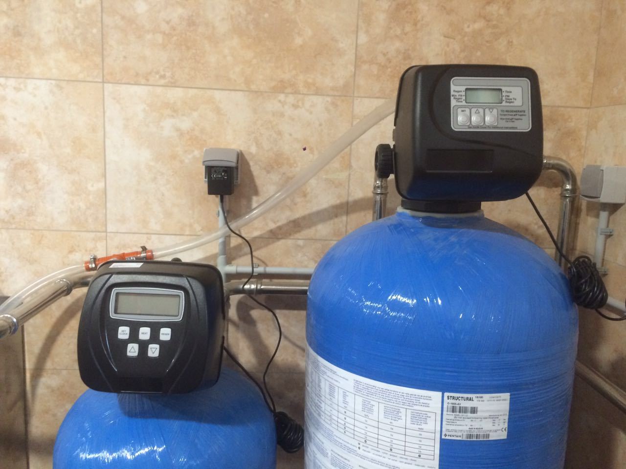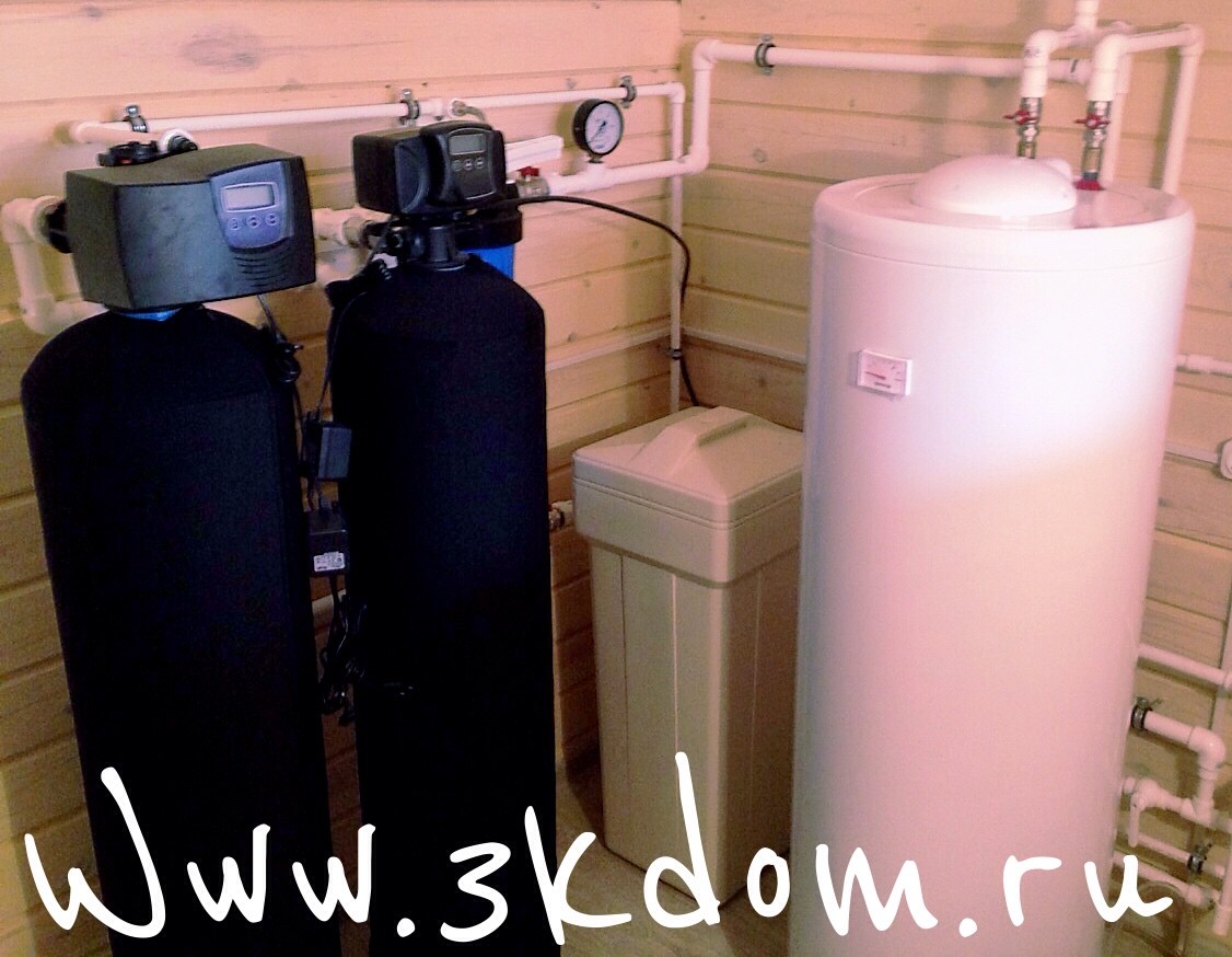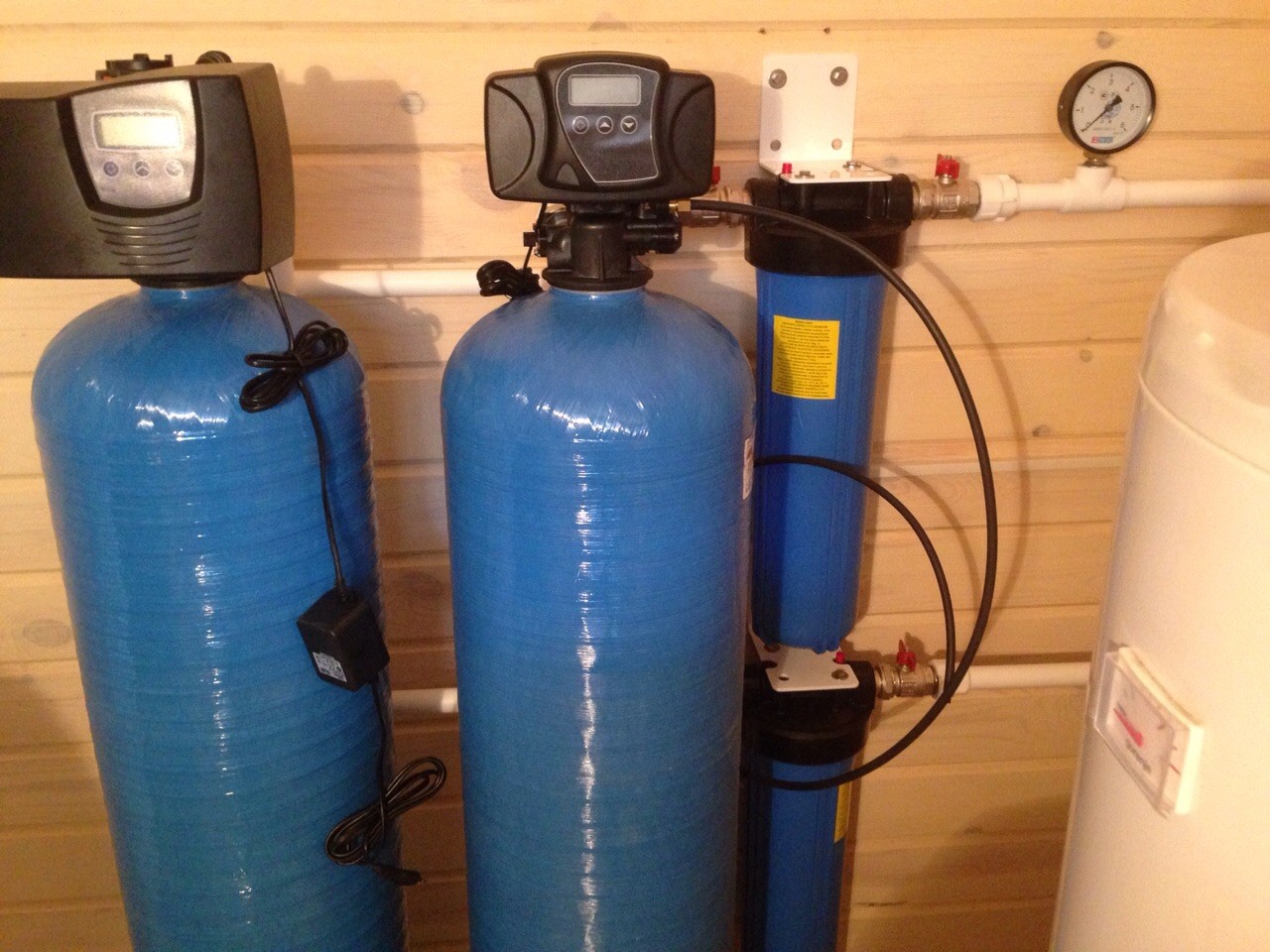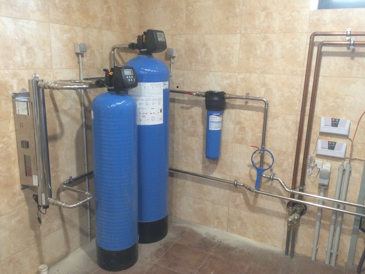 -Установка умягчения. Жесткость воды одна из самых насущных проблем. Она богата большим содержанием в воде количества солей жесткости - углекислых и сернокислых солей кальция, магния и железа. Жесткая вода не пригодна для приготовления пищи и питья. Для современной бытовой техники, систем горячего водоснабжения и отопления, сантехники – жесткость воды – настоящая угроза. При нагревании воды соли жесткости выпадают в осадок и образуется накипь, которая является частой причиной ремонтов нагревательных котлов и труб, сантехники, бытовой техники. Решить эту проблему жесткости воды поможет умягчение. Кроме того, специальные наполнители фильтров (ионообменная смола) выполняют комплексную очистку воды и удаляют из нее железо (правда не в большом количестве), нитраты, нитриты, сульфаты, аммоний, соли тяжелых металлов, различные органические соединения